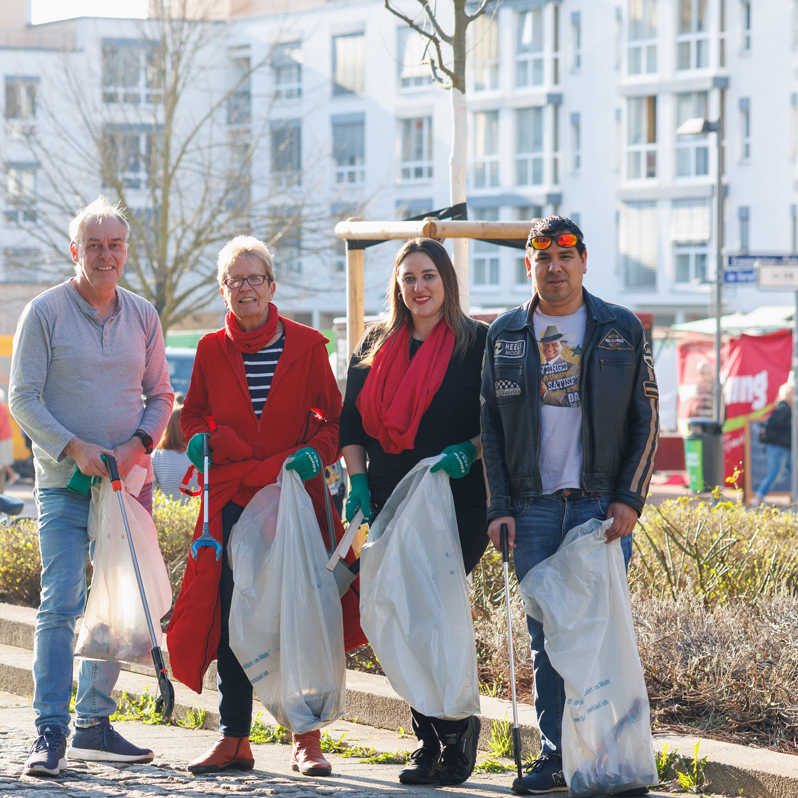 Mitglieder des Ortsvereins halfen in Preungesheim bei der Aktion des Preungesheimer Nachbarschaftsvereins auf dem Gravensteiner Platz sowie in der Eckenheimer Sigmund-Freud-Straße, wo das Quartiersmanagement einen Sammelpunkt organisierte hatte.